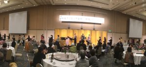 平成30年1月21日(日)10時から14時の間、都ホテルニューアルカイックで六美会総会、第18回合同勉強会、六島クリニック合同「新春のつどい」を開催いたしました。患者様等とスタッフ併せて過去最多の239名の方々にご参加いただきました。六美会総会は六島クリニック、第二六島クリニック、城内六島クリニック、伊丹ガーデンズクリニックが各クリニック毎に実施した後、城内六島クリニック 速水先生から「患者様が自分でできる災害対策」というテーマで講演をして頂きました。「新春のつどい」は和洋中のコース料理と屋台の天ぷら・お寿司・お蕎麦を召し上がって頂きながら、今年は振り袖姿の「アンドM」のお二人に音楽演奏を御披露頂きました。最後は恒例の「河内おとこ節」にあわせて、広い会場いっぱいにたくさんの皆様の総踊りで締めくくりました。