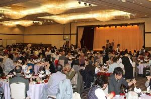 平成30年1月21日(日)10時から14時の間、都ホテルニューアルカイックで六美会総会、第18回合同勉強会、六島クリニック合同「新春のつどい」を開催いたしました。患者様等とスタッフ併せて過去最多の239名の方々にご参加いただきました。六美会総会は六島クリニック、第二六島クリニック、城内六島クリニック、伊丹ガーデンズクリニックが各クリニック毎に実施した後、城内六島クリニック 速水先生から「患者様が自分でできる災害対策」というテーマで講演をして頂きました。「新春のつどい」は和洋中のコース料理と屋台の天ぷら・お寿司・お蕎麦を召し上がって頂きながら、今年は振り袖姿の「アンドM」のお二人に音楽演奏を御披露頂きました。最後は恒例の「河内おとこ節」にあわせて、広い会場いっぱいにたくさんの皆様の総踊りで締めくくりました。